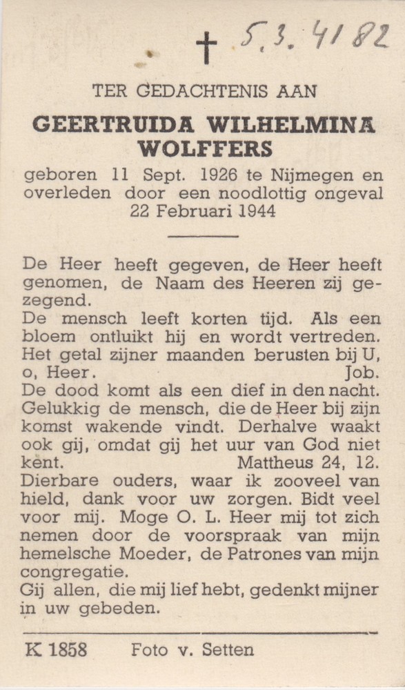 Bidprentje Geertruida Wilhelmina Wolffers