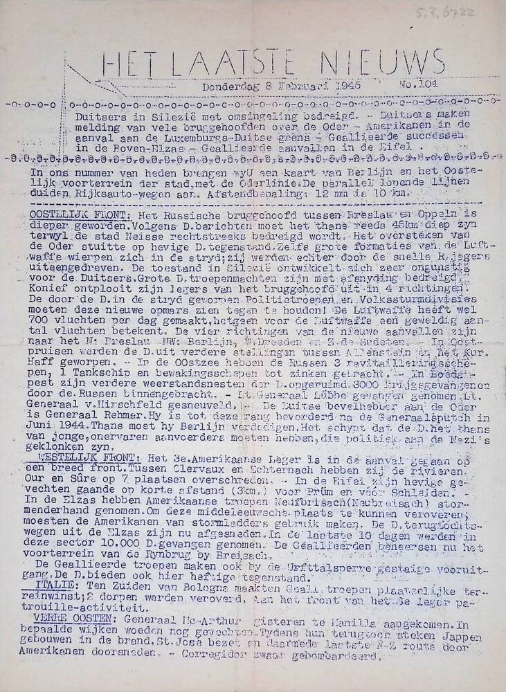 Het Laatste Nieuws no 104, Donderdag 8 februari 1945