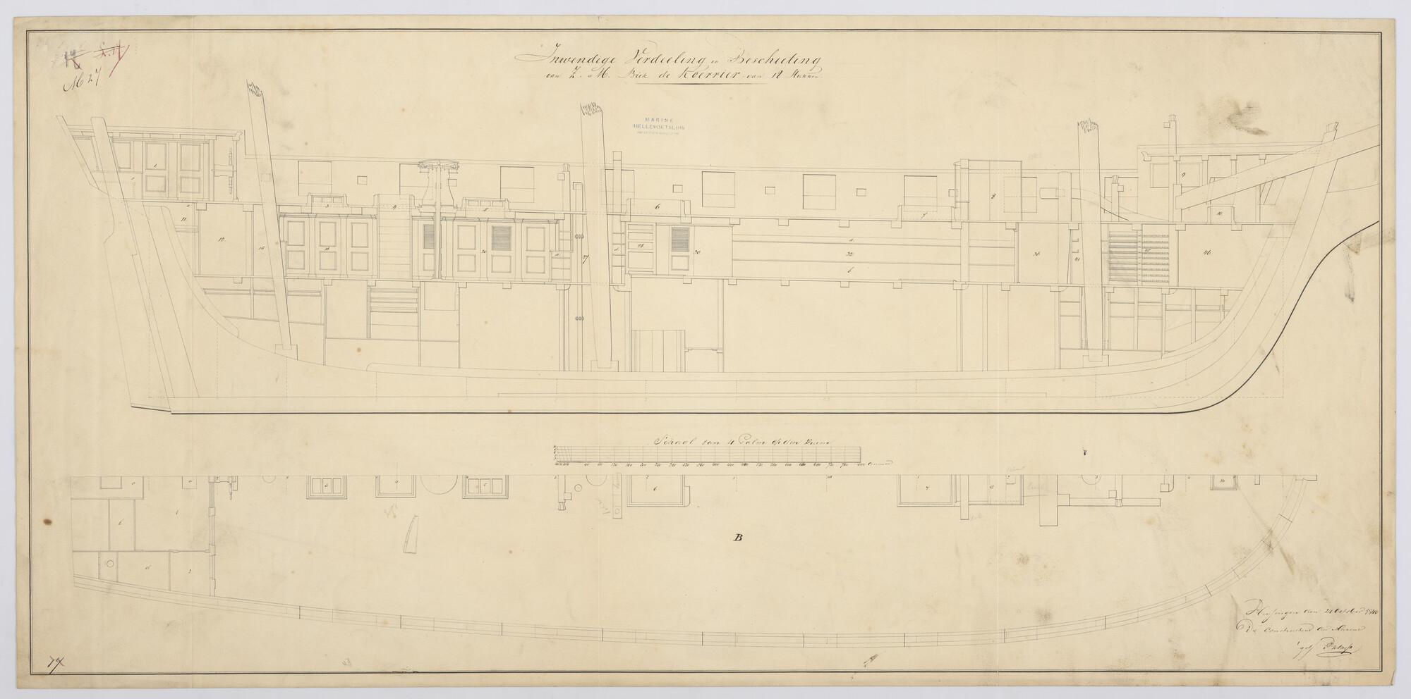 Indelingsplan van de brik Zr.Ms. 'Koerier' van 18 st...