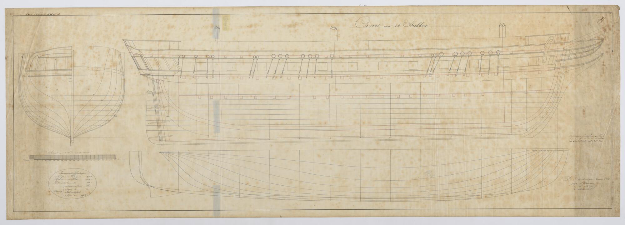 Lijnenplan van het korvet Zr.Ms. 'Argo' van 26 stukken