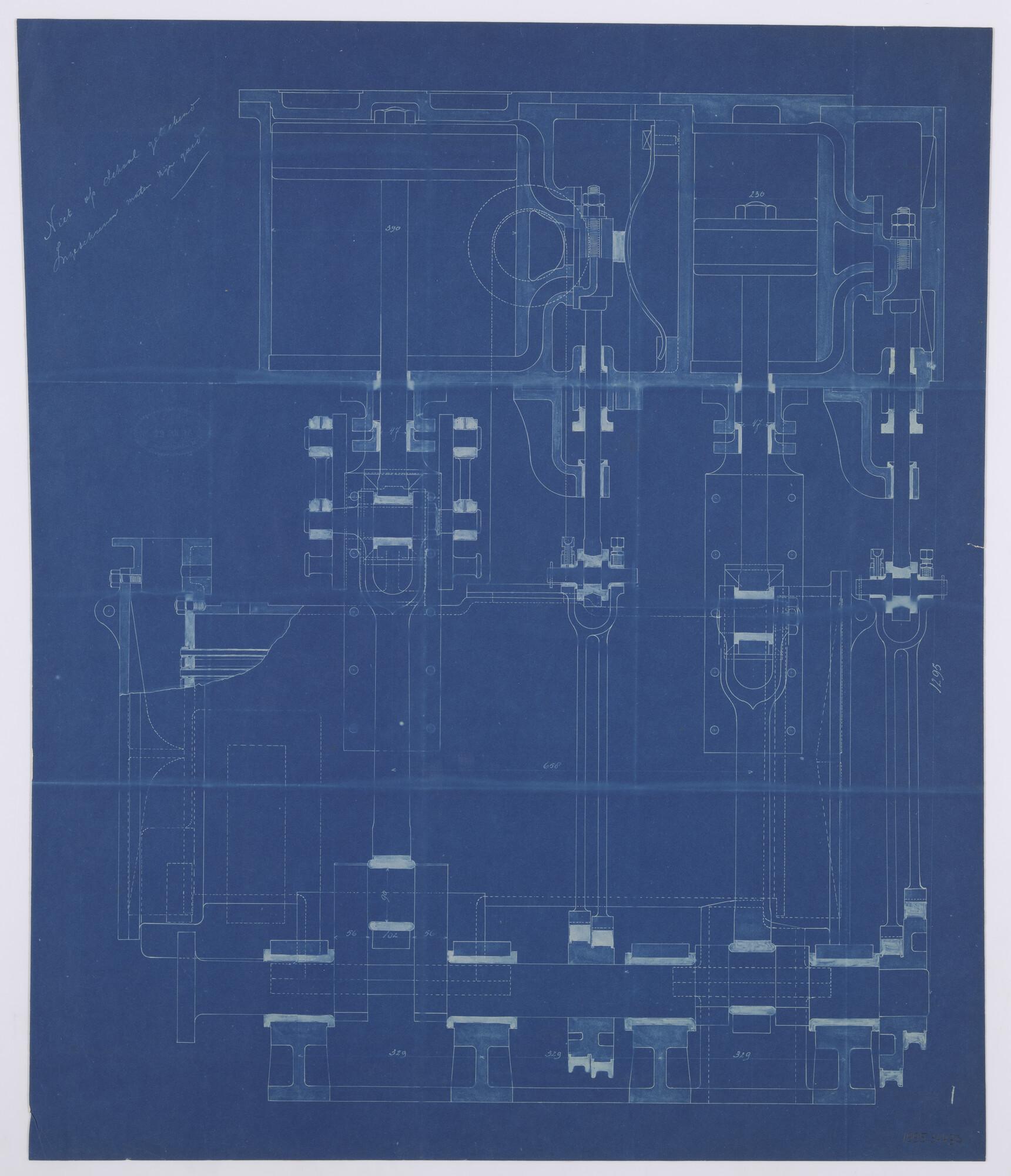 Zijaanzicht hoofdmachine van stoomsleepboot voor de ...