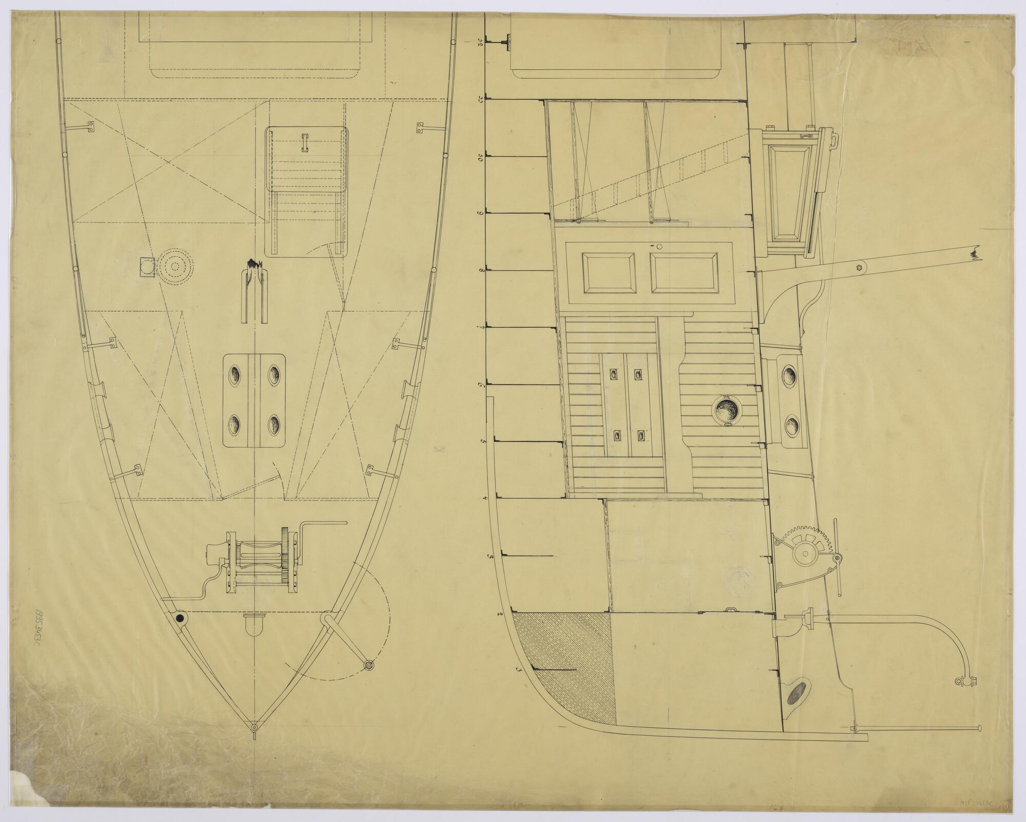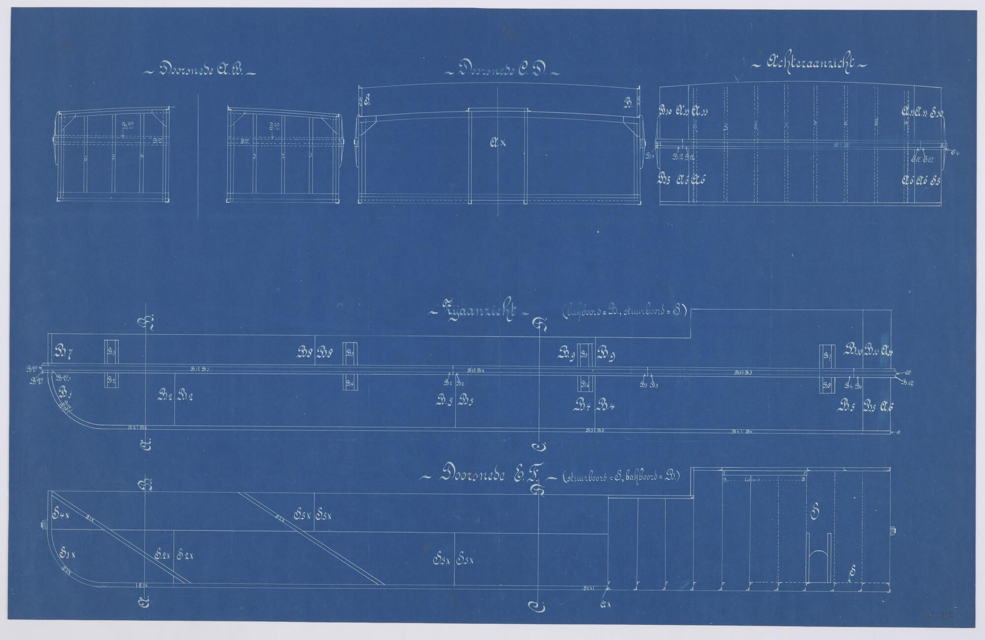 Algemeen -en constructieplan voor dekschuit van 23 ton