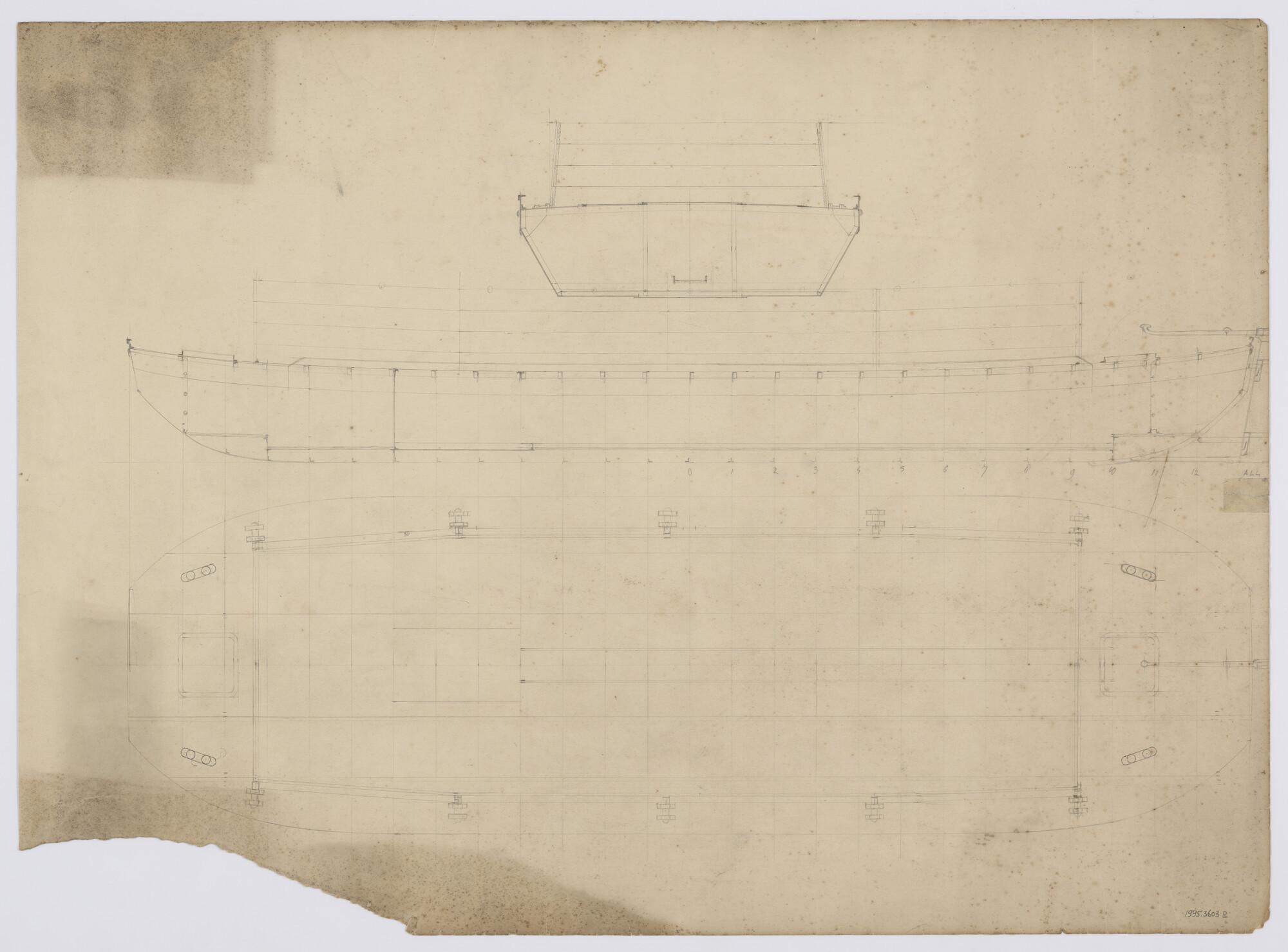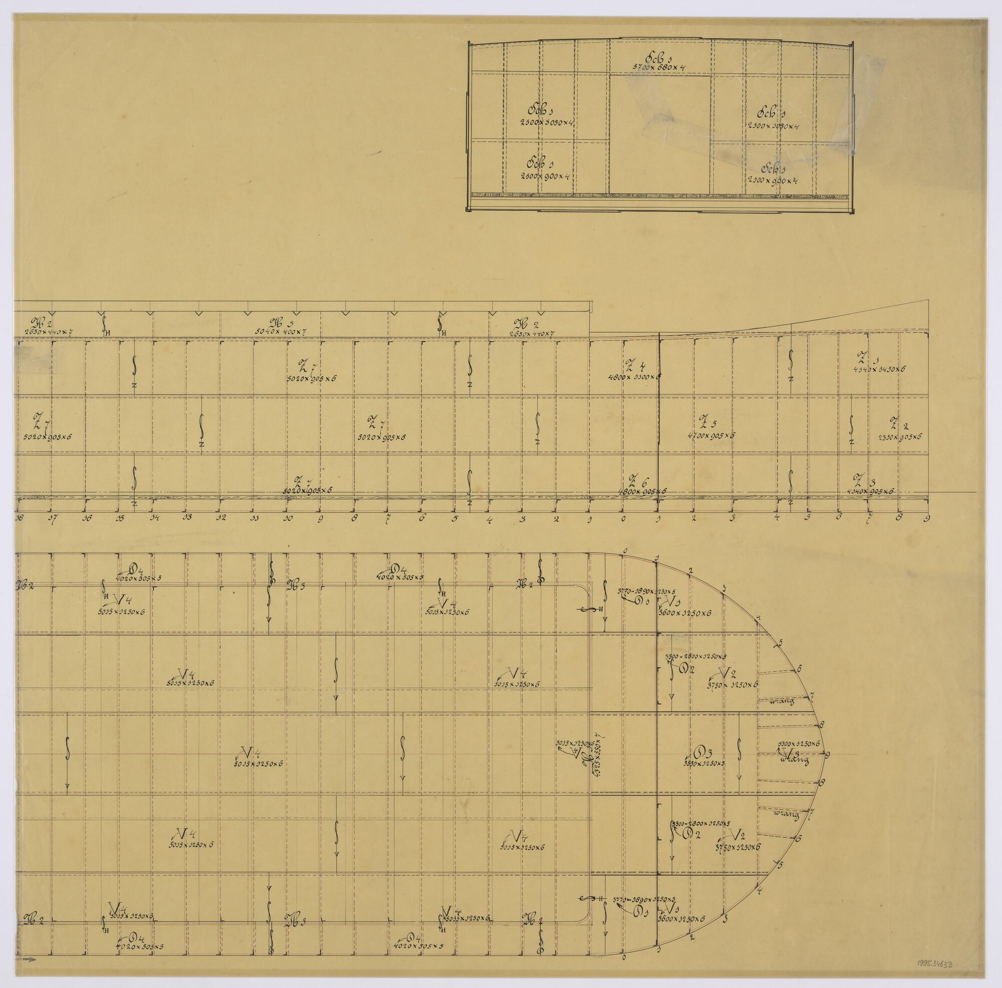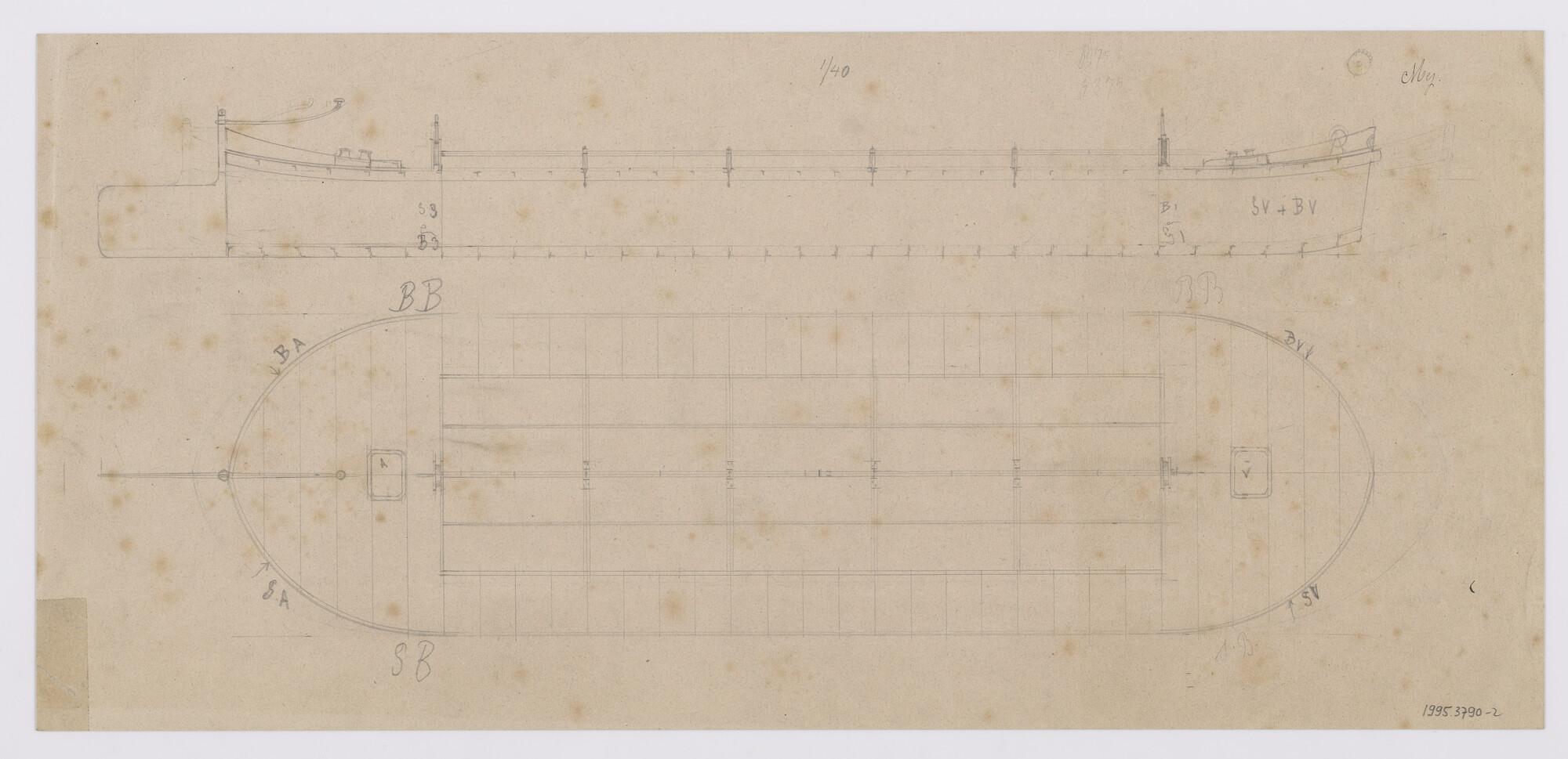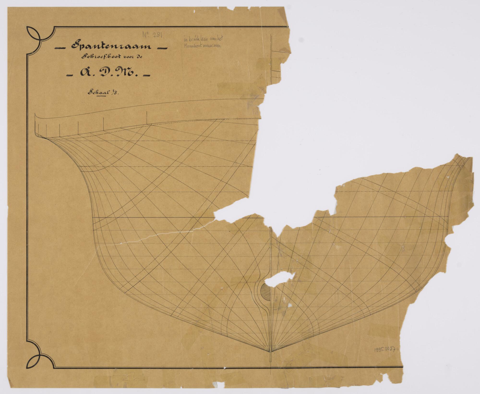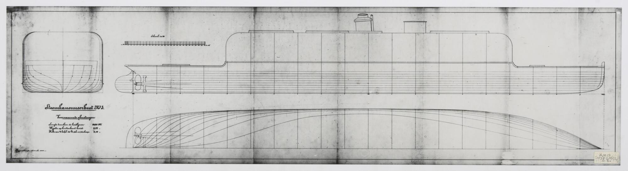 Lijnenplan en spantenraam van Zr.Ms. Stoomkanonneerb...
