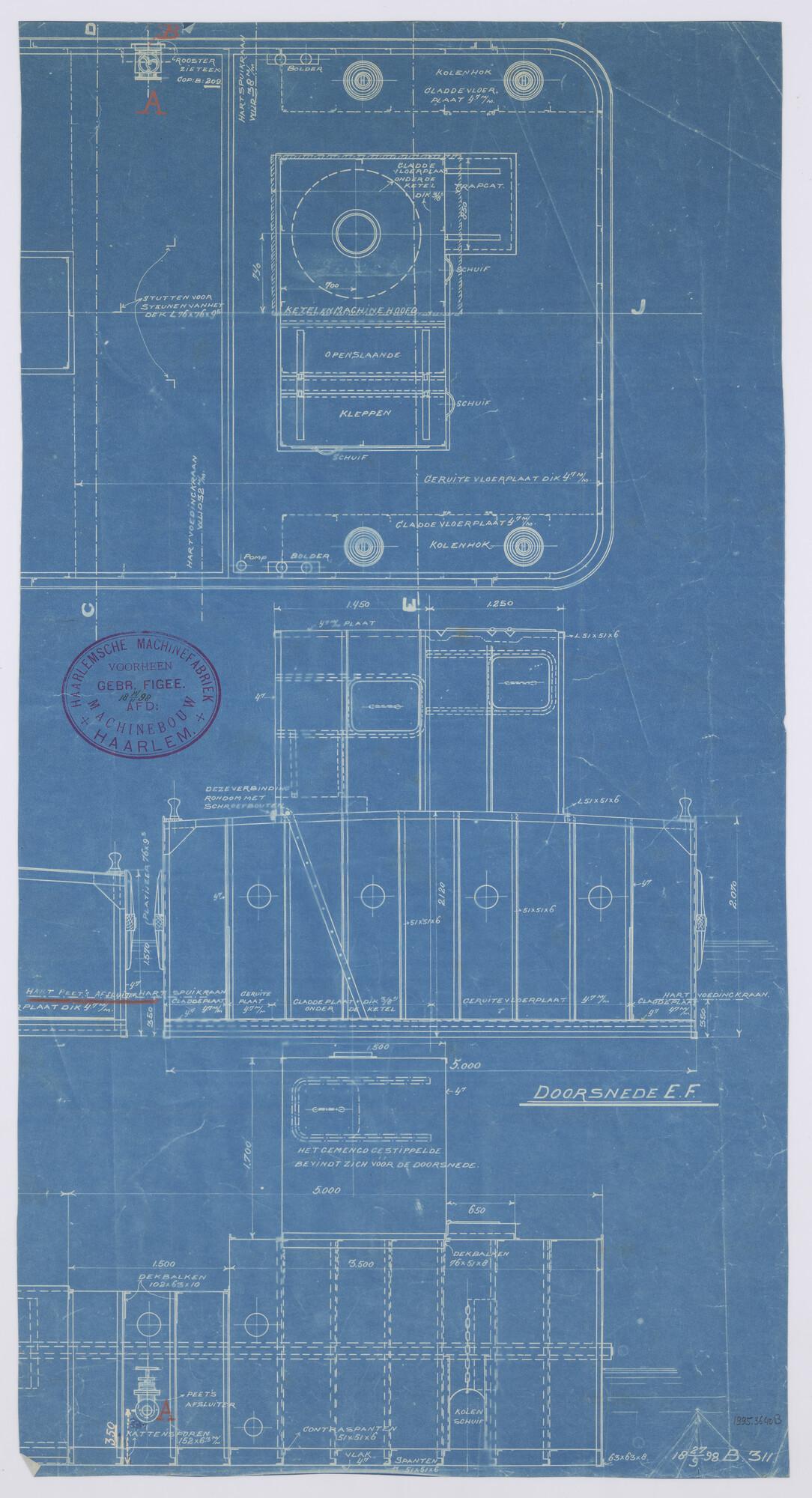 Doorsnede cilinder en zijaanzicht ketel van de stoom...