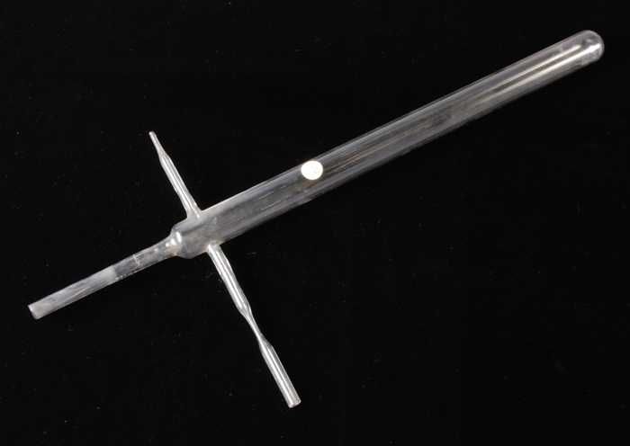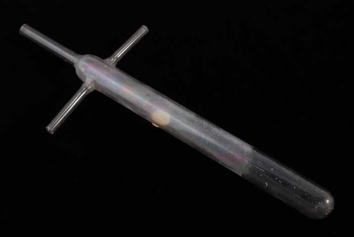 Glazen buis met inwendig een dunne, gebogen buis