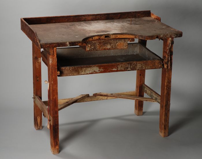 Kruk horend bij edelsmidswerkbank