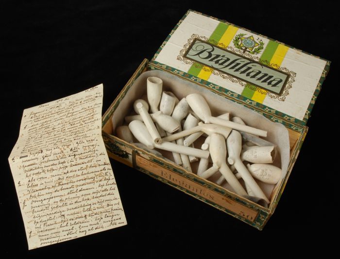 Sigarenkist met 25 kleipijpen