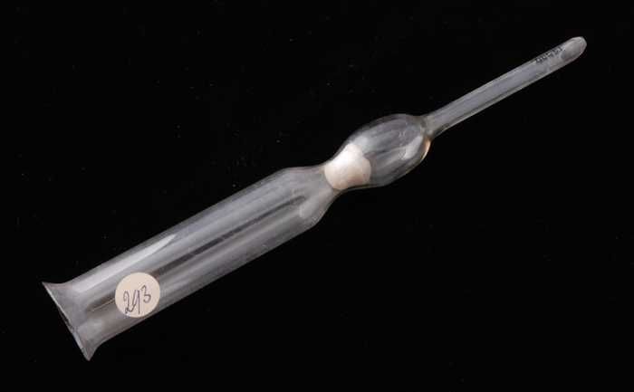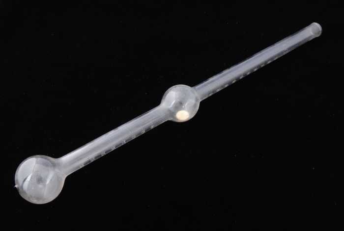 Glazen, gebogen buis met een reservoir, gebruikt in ...