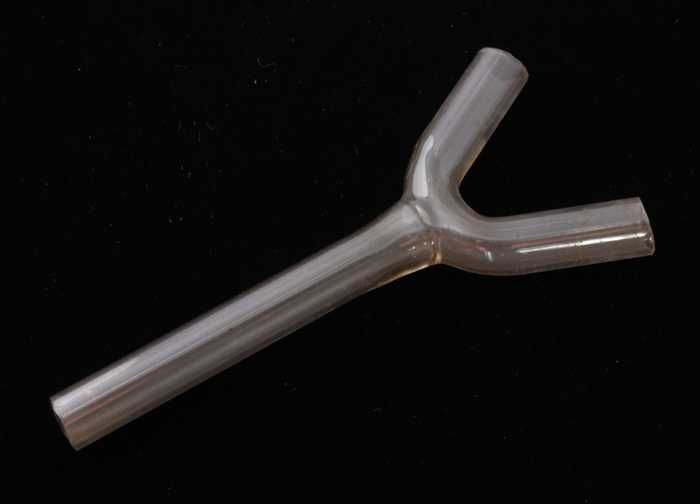 Glazen, Y-vormig verbindingsstuk, gebruikt in apotheek