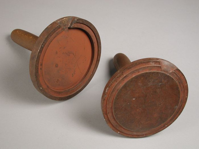 Vierdelige bronzen mal voor gortenpot met initialen ...