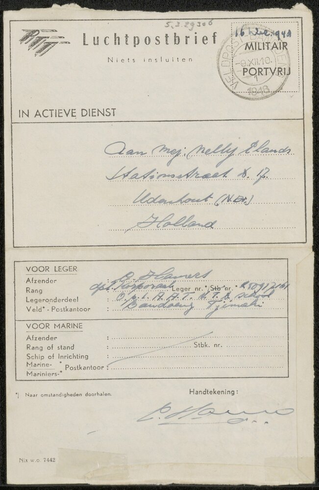 Brief van C. Hamers aan mej. Nelly Elands