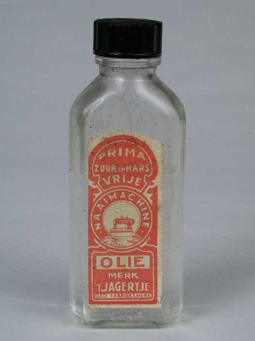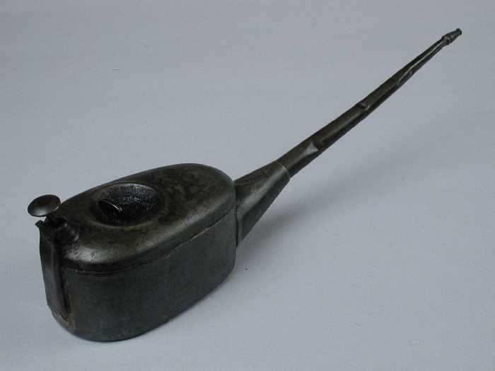Metalen oliespuitje met lange tuit en inhoud, gebrui...