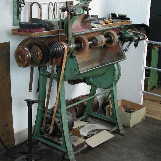 Uitpoetsmachine: groot groengeverfd metalen apparaat...