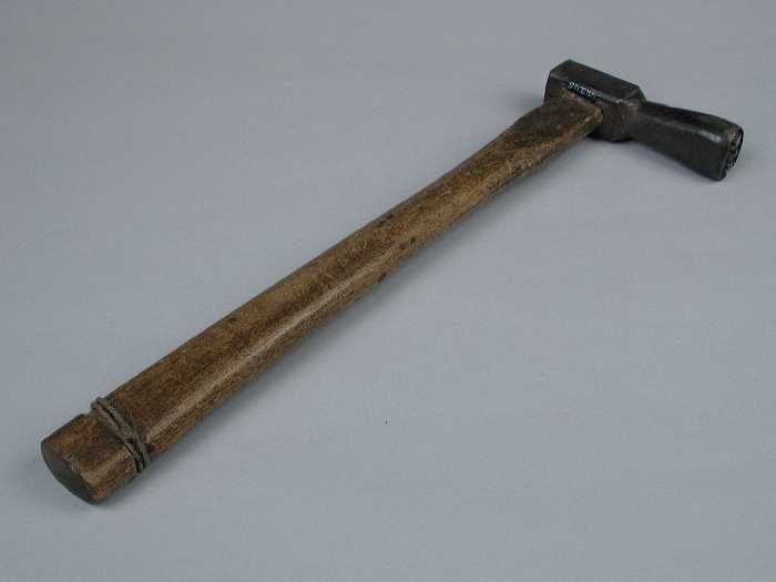 Hamer met in reliëf in metalen kop, waarschijnlijk o...