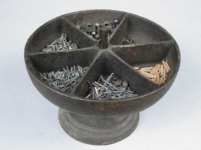 Metalen spijkerbak of spijkerschaal met zes vakken, ...