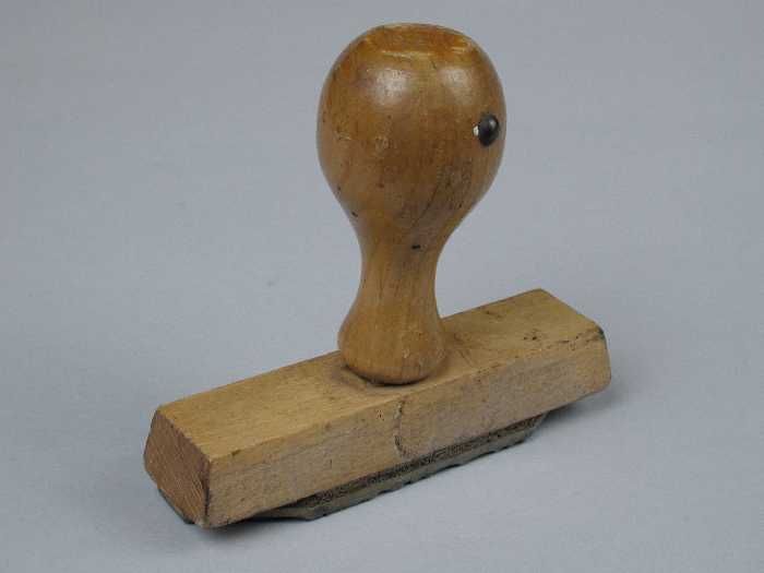 Houten stempel met handvat, met tekst van schoenmake...