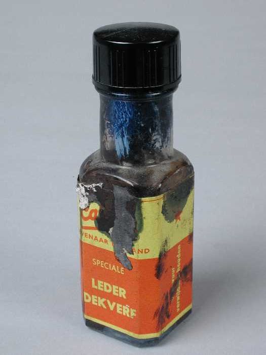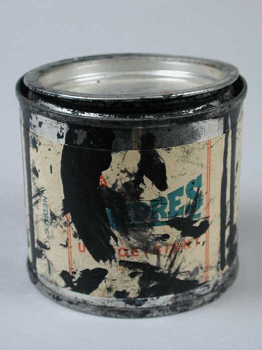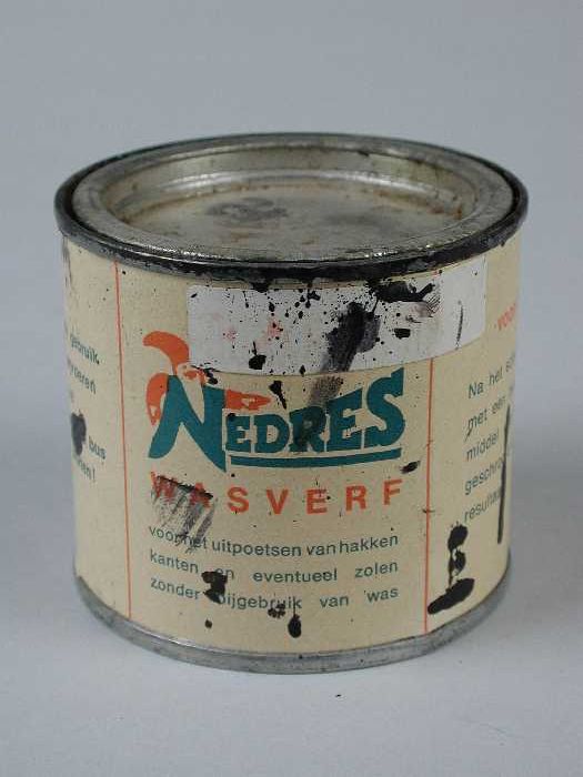 Metaalkleurig blik met etiket "Nedres wasverf", gebr...