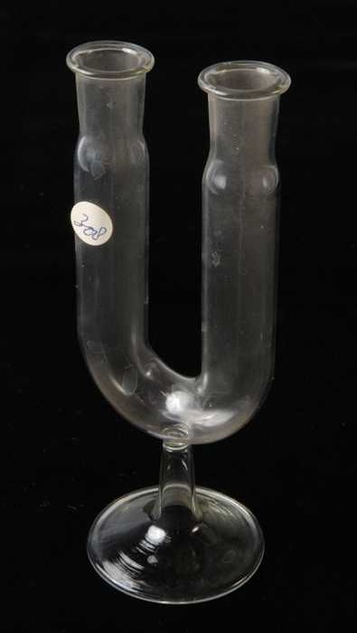 Glazen scheitrechter met ui-vormig lichaam en een la...