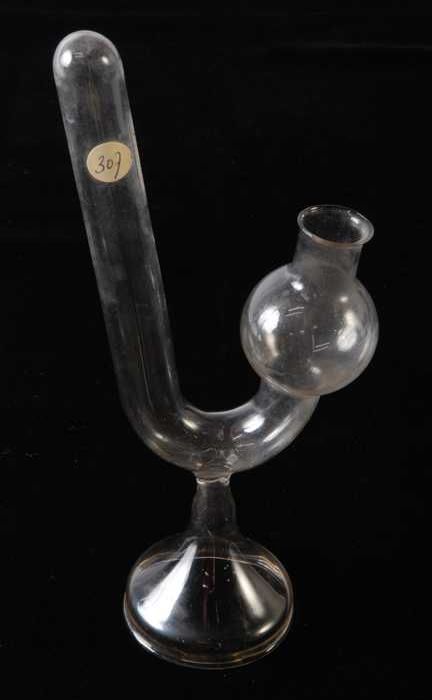 Glazen reageerbuis met veiligheidsbol, gebruikt in a...