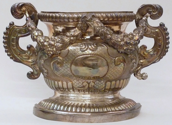 Wierookvat, op vat festoenen van vruchten en engelen