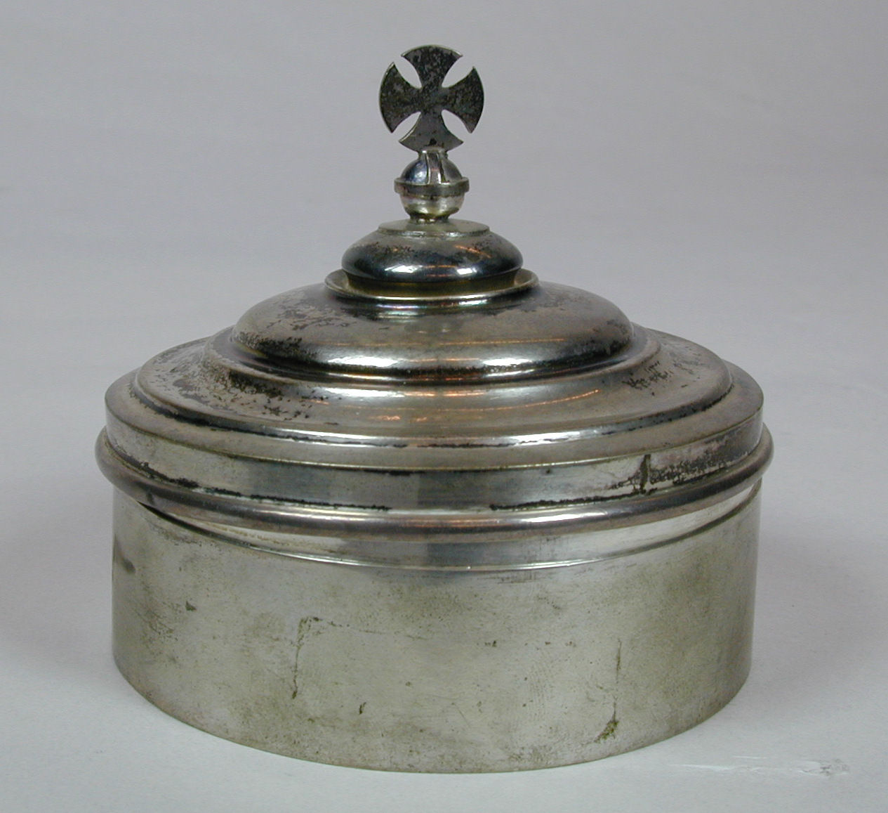 Ronde lunuladoos met kruisje op deksel