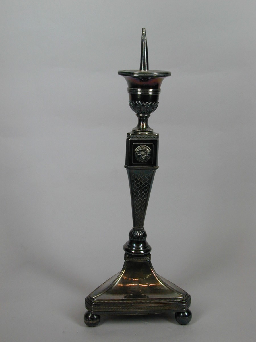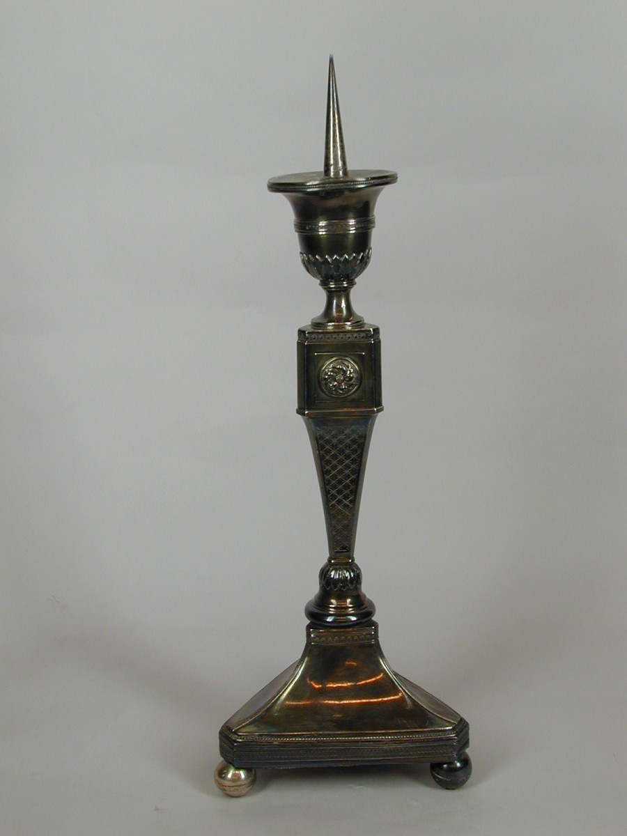 Kandelaar met driehoekige voet op balpoten, met op v...