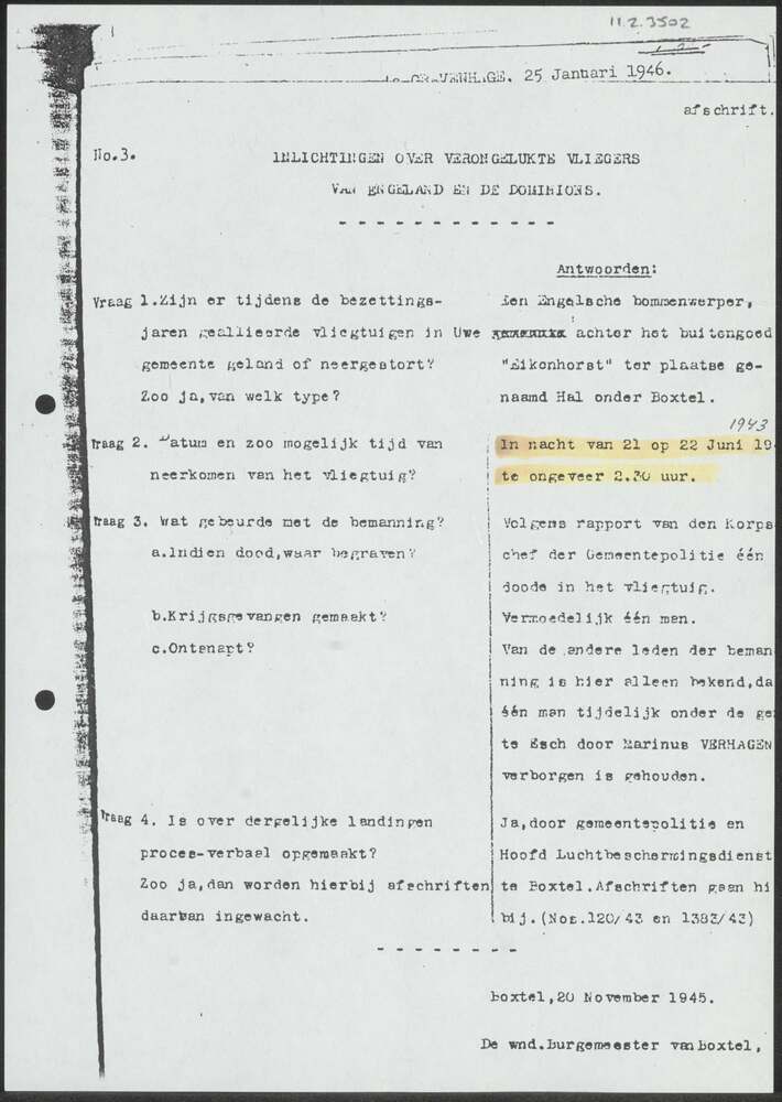 Rapport Gemeente Boxtel 20 november 1945.