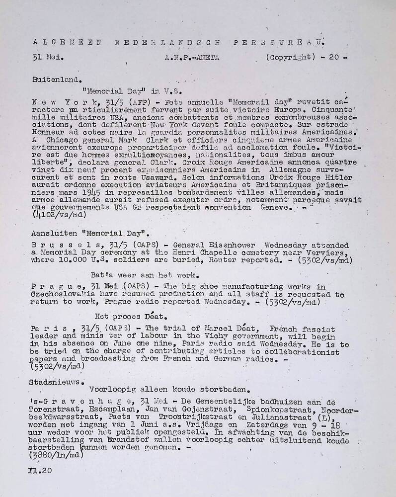 Vel: Algemeen Nederlandsch Persbureau, mededelingen,...