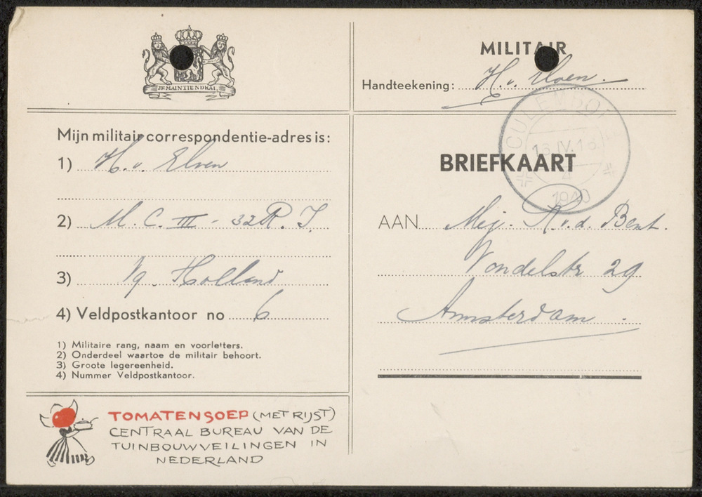 Vel, doorslag: "Landgenooten, woonende in alle delen...
