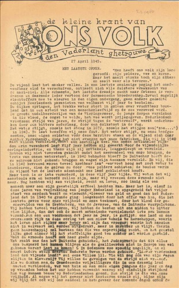 De Kleine krant van "Ons Volk" Ongenummerd, 27 April...