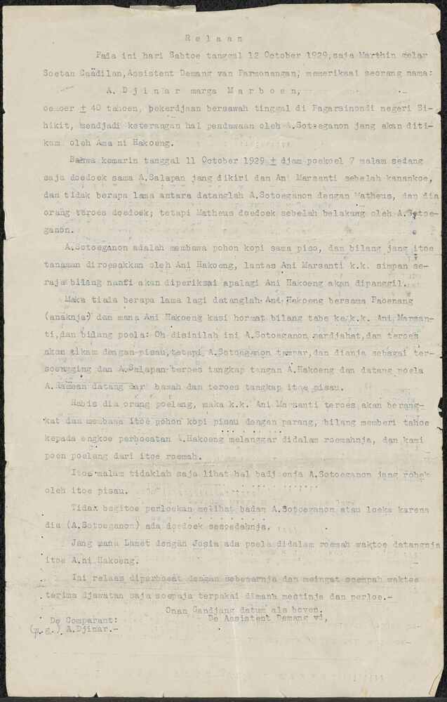 Getypte verklaring van de T.N.I. in het maleis "Kaki...