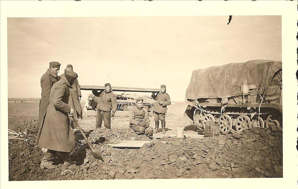 Russische krijgsgevangenen, Duitse halftrack met ove...