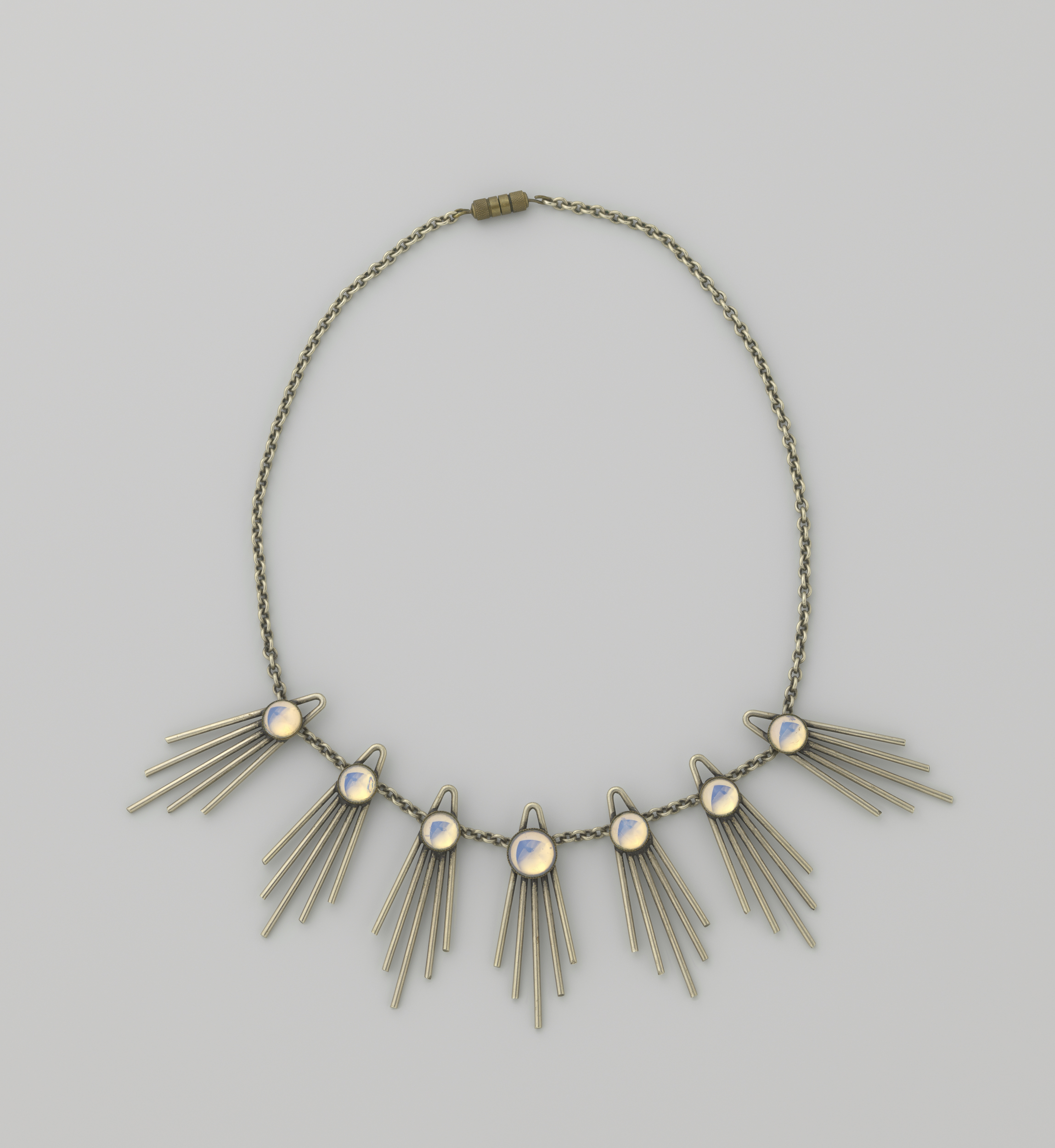 Collier met zeven halve ronde bollen van geïriseerd ...