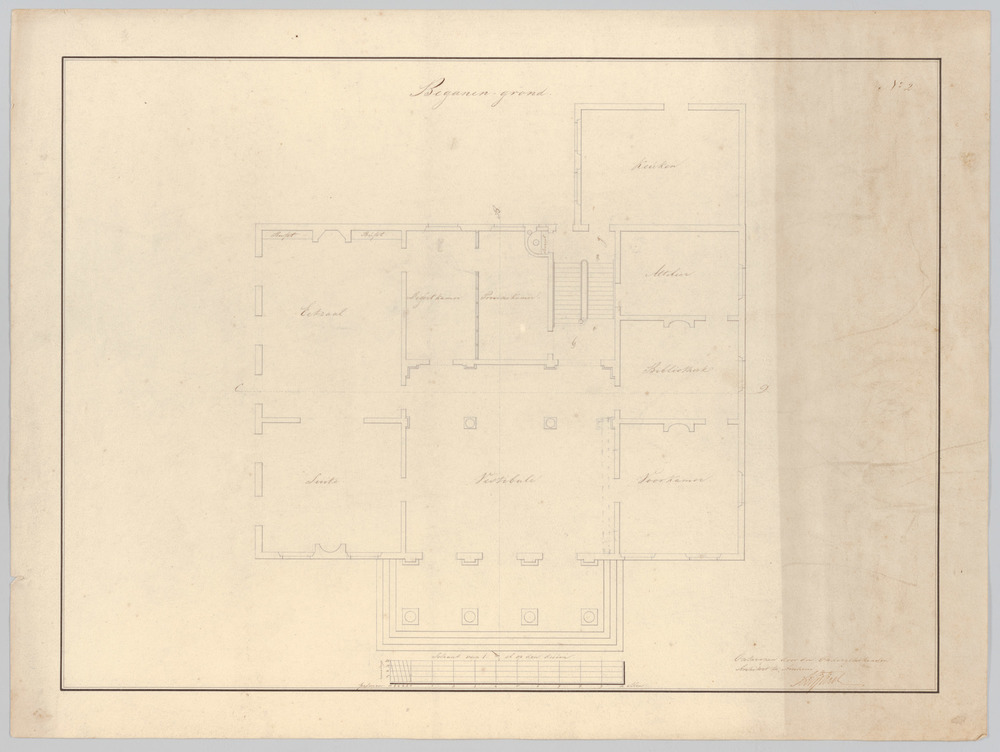 Plattegrond van de beganegrond van huis Schaffelaar