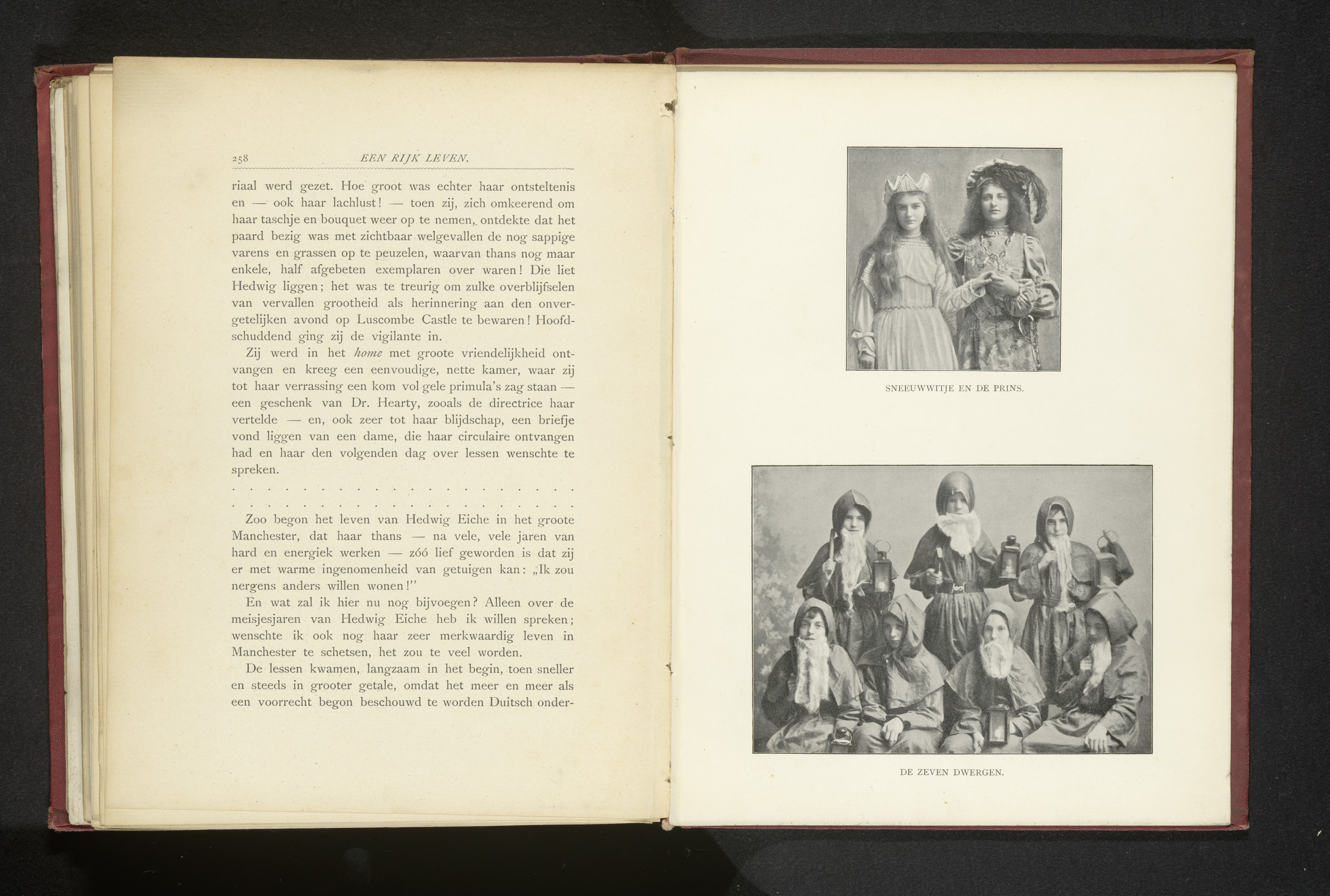 Twee acteurs in kostuum die sneeuwwitje en de prins ...