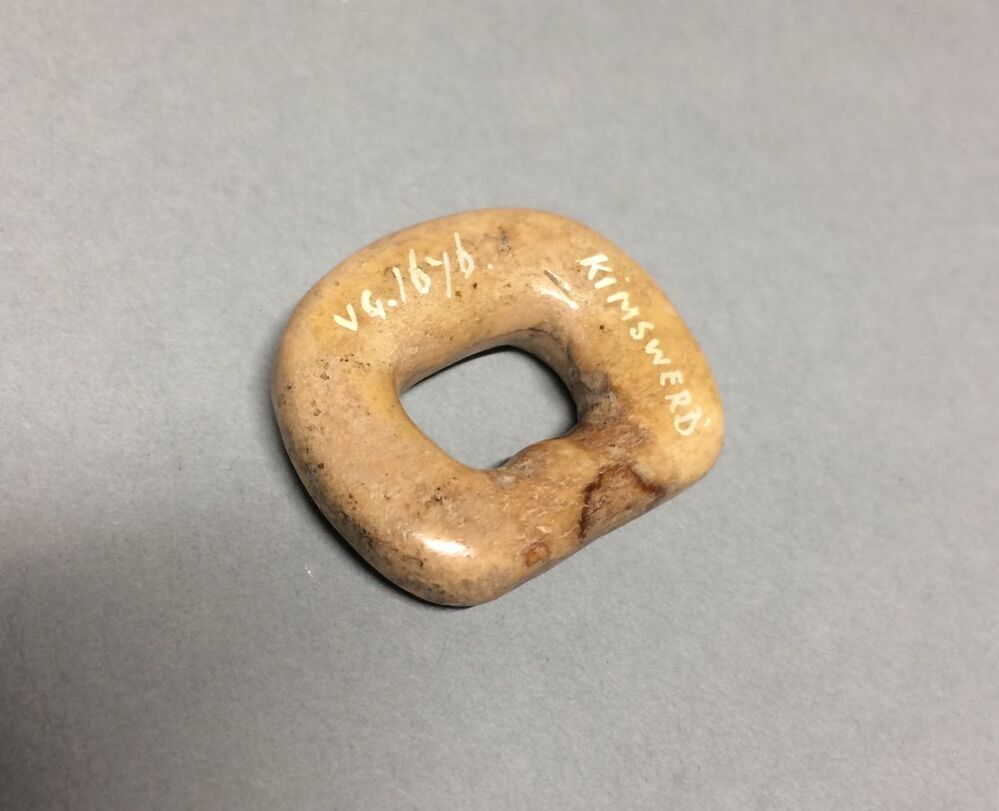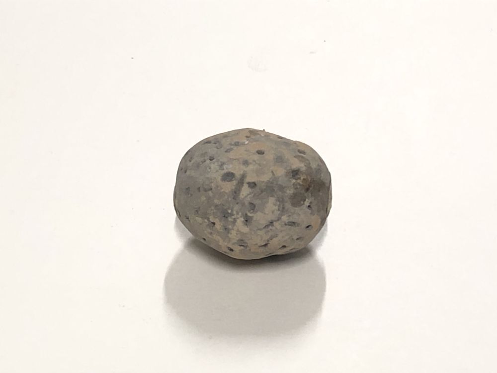 Ronde, naar de punt spits toelopende speelsteen van ...