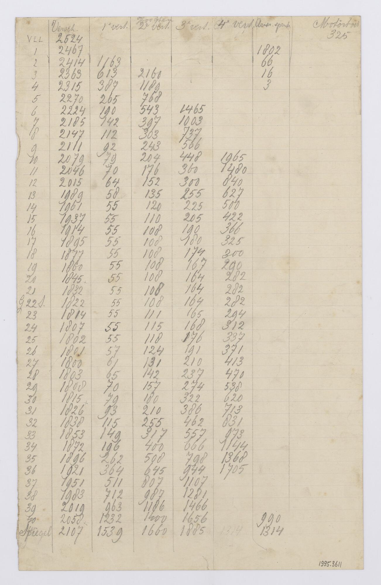 Spantenlijst voor de directieboot Direccion