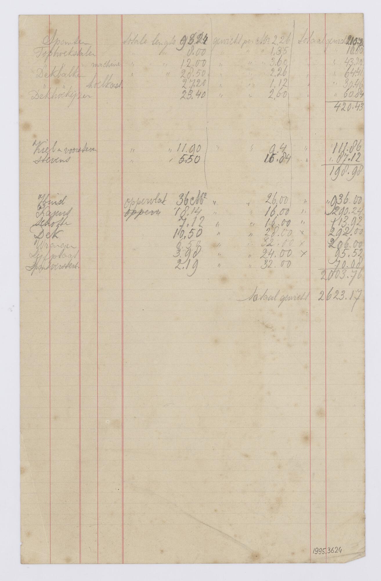 Gewichtsberekening van een vrachtschip