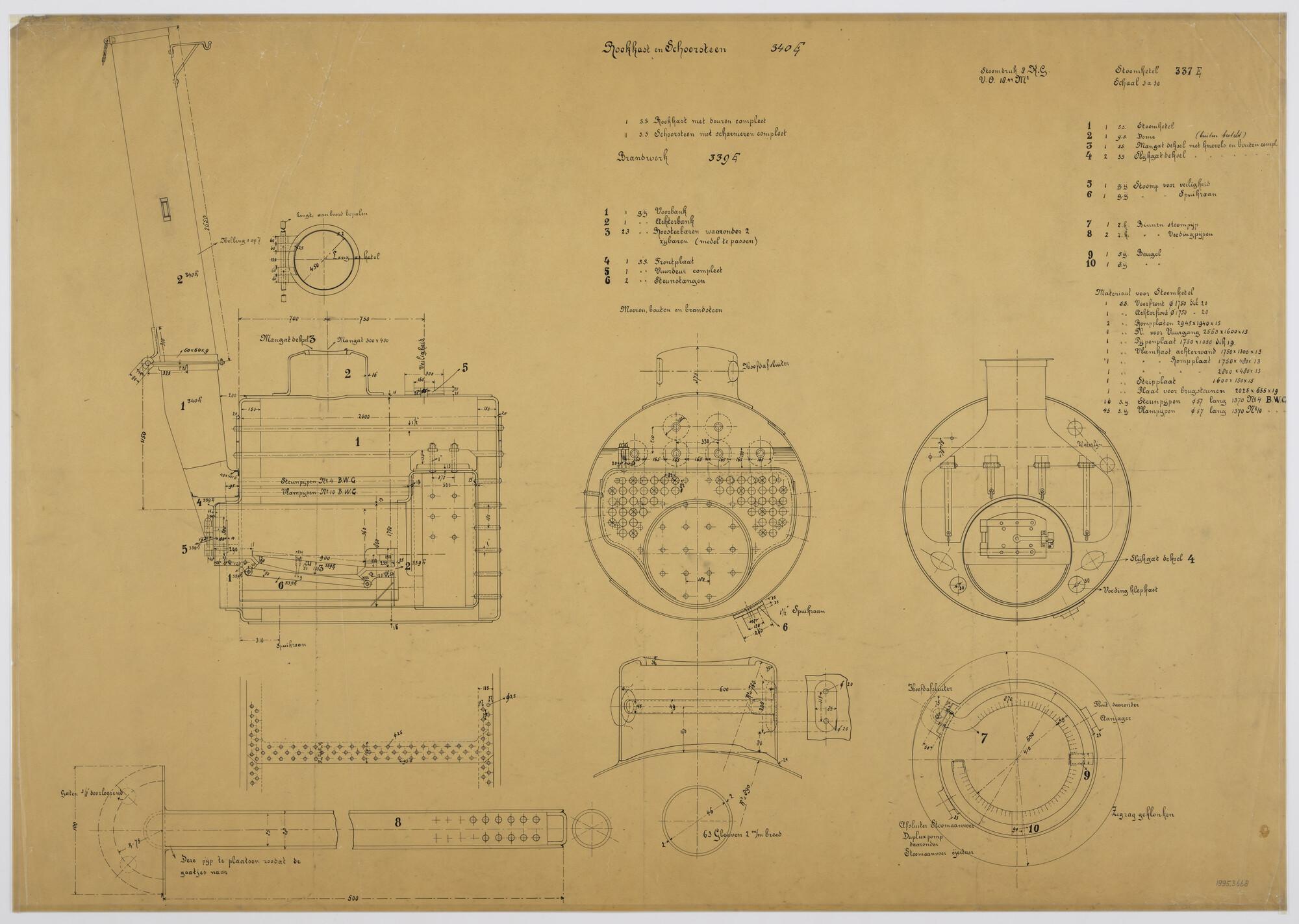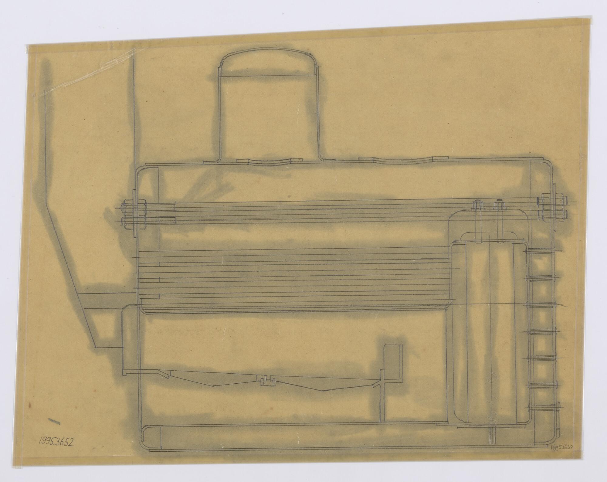 Schets plaatsing ketel in de stoomradersleepboot 'Go...