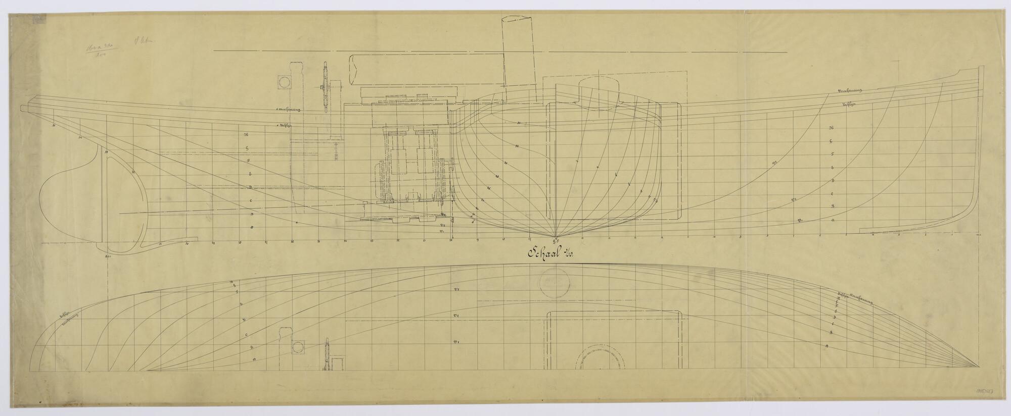 Lijnenplan achterschip van vrachtschip