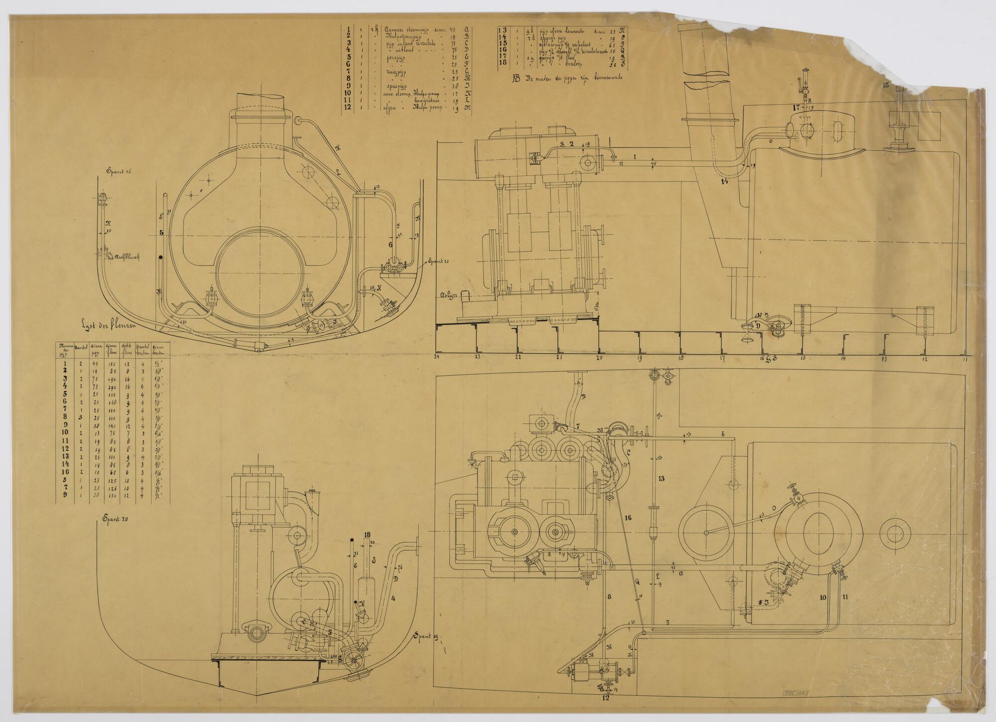 Spantenlijst van een directieboot voor de Nederlands...