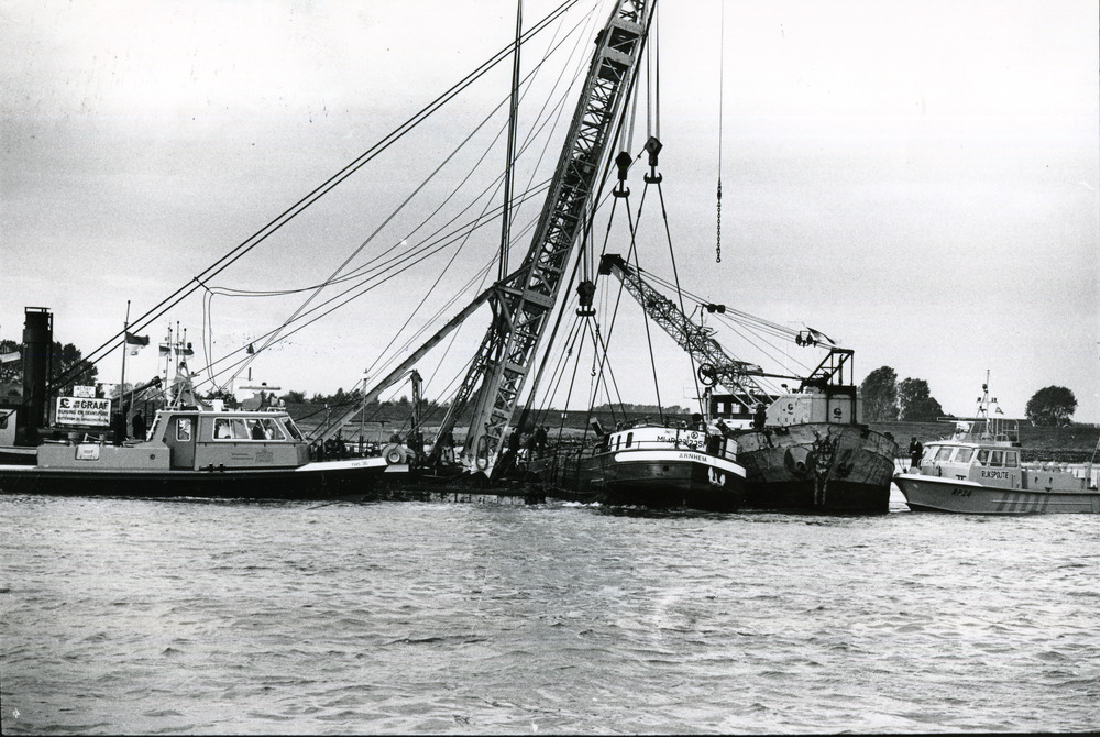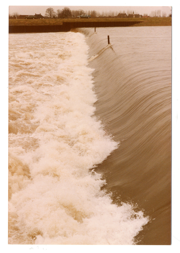 Kleurenfoto van de overlaat in de Rijn bij Pannerden...