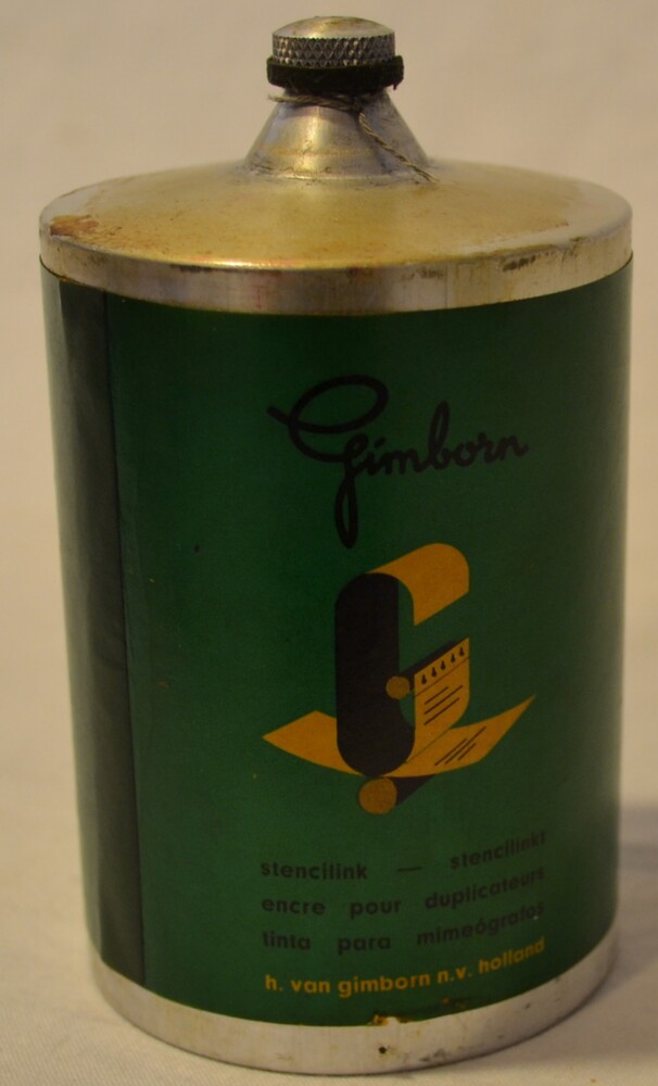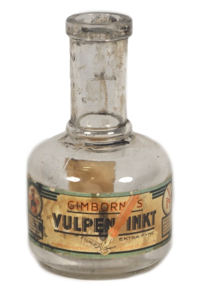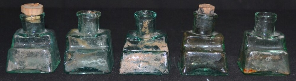Vijf inktpotjes van glas van H. van Gimborn N.V. 's-...