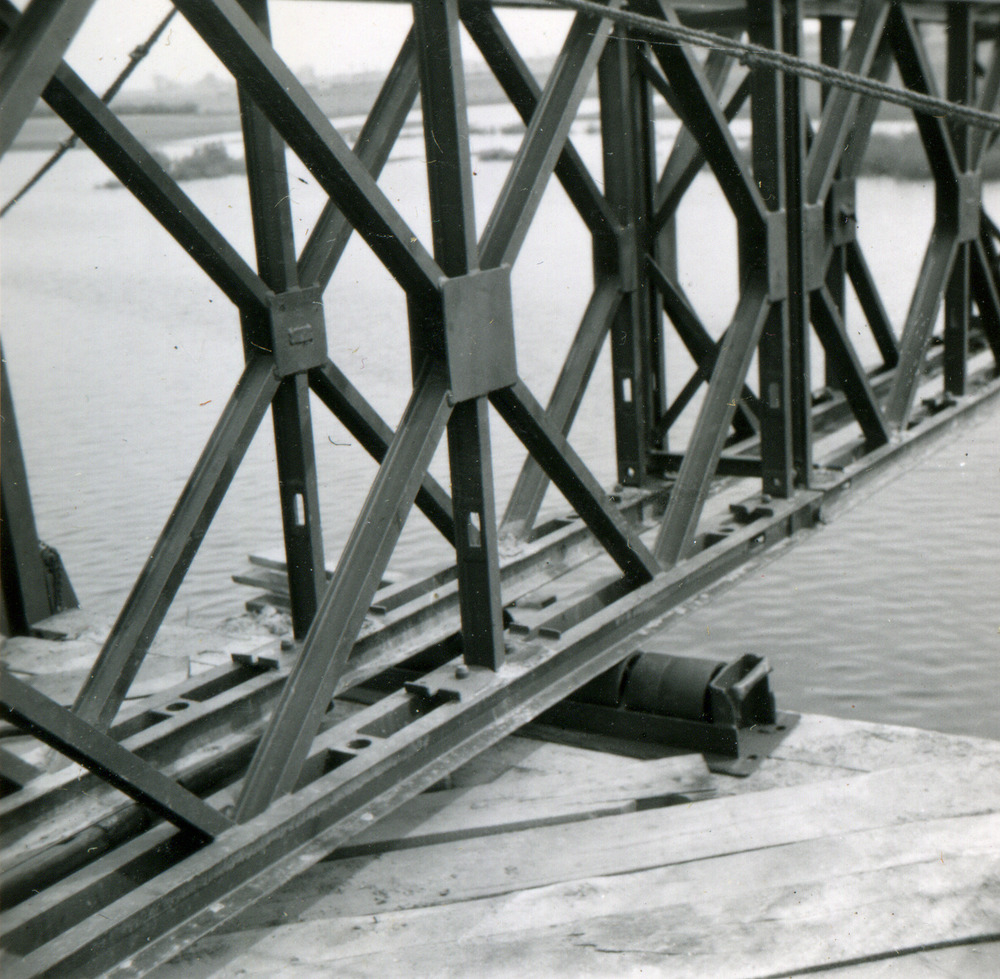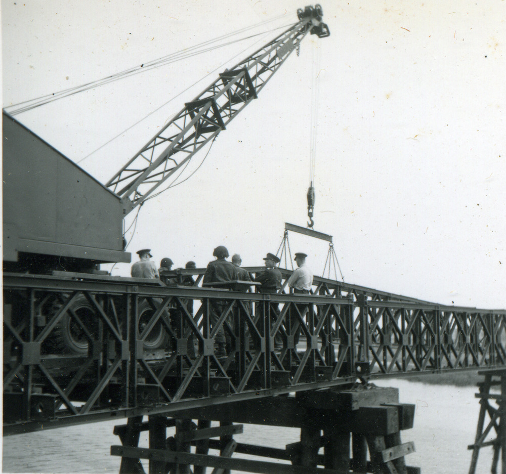 Zwart-wit foto van de Genietroep die de Baileybrug a...