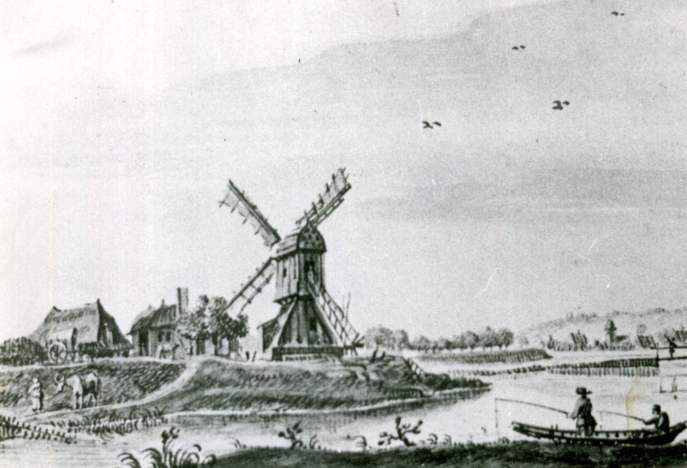 Zwart-wit foto van de melkfabriek / -winkel Stoll te...