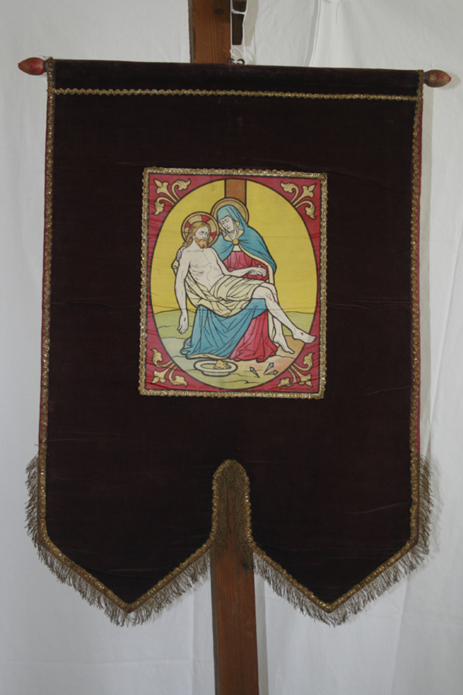 Vaandel met afbeelding van Maria met Jezus' dode lic...