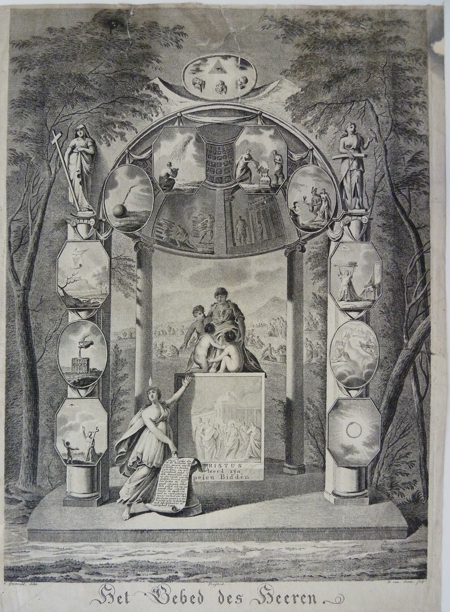 Prent op de Haarlemse rederijkerkamer met Christus e...
