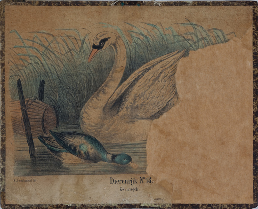 schoolplaat, dierenrijk. Kleurenplaat van zwaan en e...