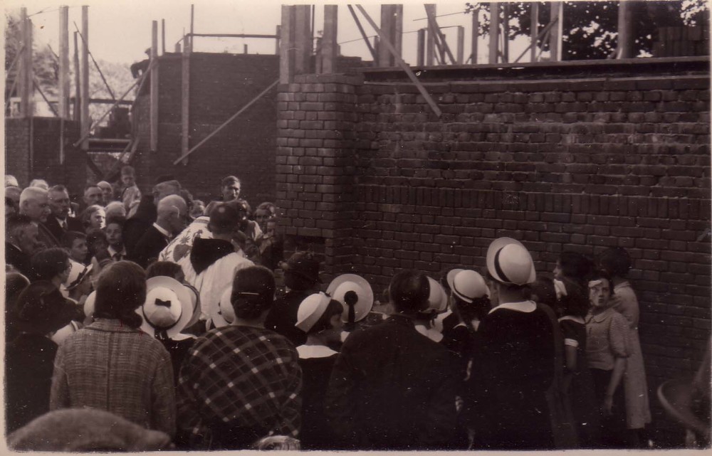 Eerste steenlegging katholieke kerk 1939 te Zaltbommel.