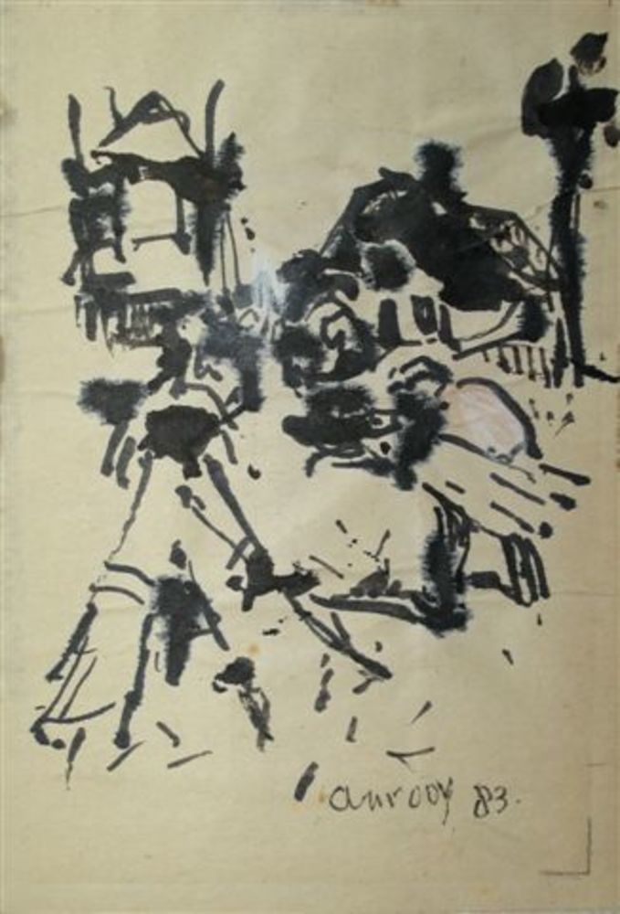 aquarel,boerenerf, Jan van Anrooy 1983
